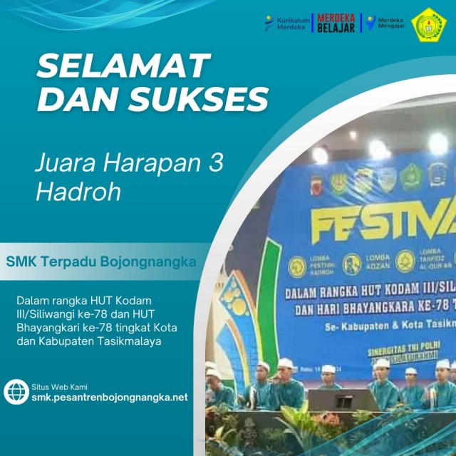 Tasikmalaya - Peserta didik SMK Terpadu Bojongnangka mengikuti Festival Sinergitas dalam rangka HUT Kodim III/Siliwangi ke-78 dan HUT Bhayangkari ke-78 tingkat Kota dan Kabupaten Tasikmalaya. Kegiatan tersebut dilaksanakan di komplek Islamic Centre GEBU, Tasikmalaya.